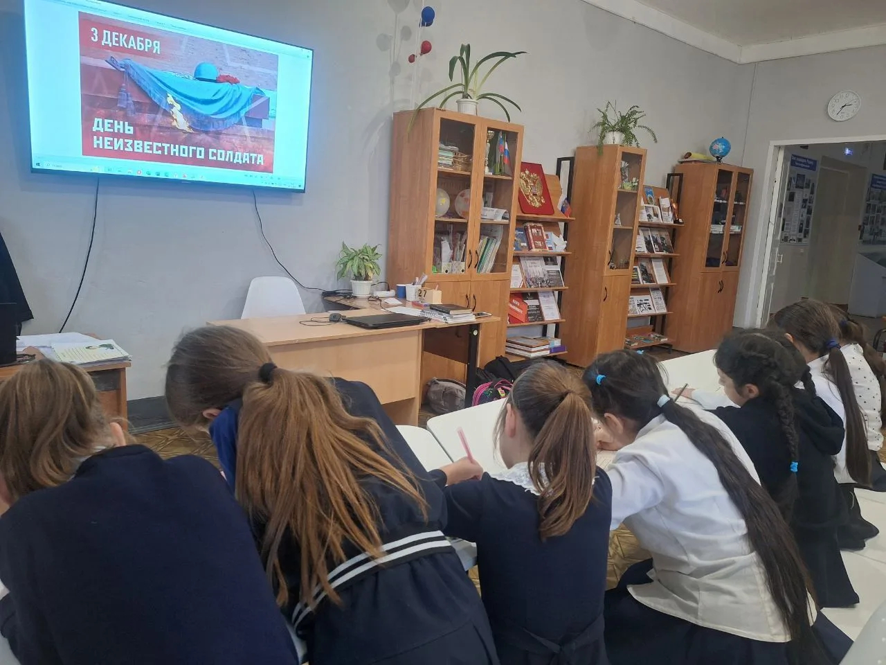 В рамках сетевого взаимодействия Морозово Борковской средней школы и сельской библиотеки, учащиеся приняли участие в особенной беседе, посвященной доблести, чести и отваге наших солдат во время военных действий